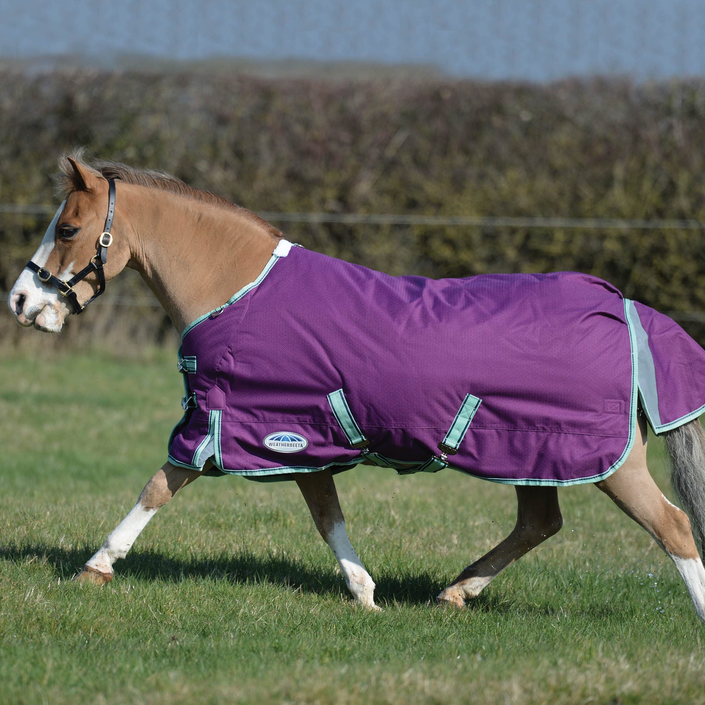 WeatherBeeta ComFiTec Premier Freedom Pony Standard Neck Lite, Purple/Navy/Mint, 57"—